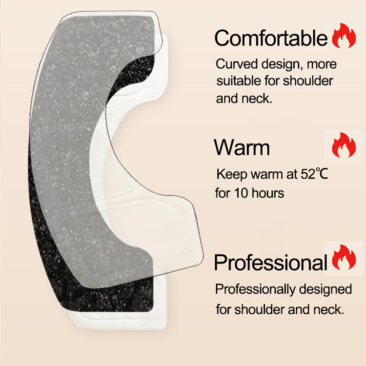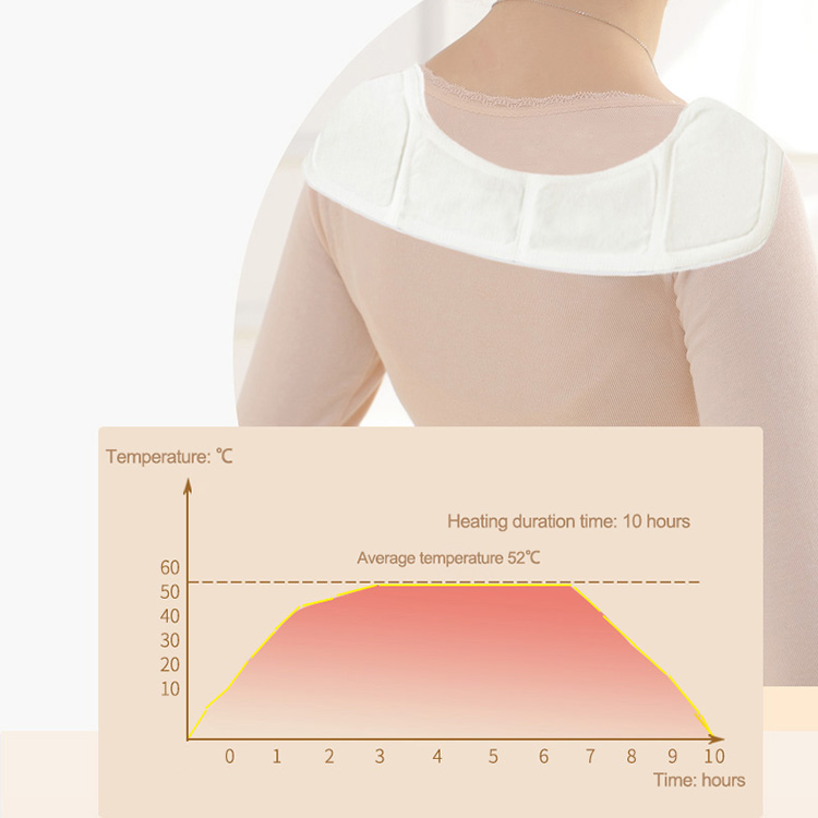 The heating duration time is 10 hours. And, if you need 12 hours or 8 hours, we can custom neck and shoulder warmer for you. The average temperature is 52℃, which can bring warmth and comfort. The average temperature can also be customized, such as 50℃.
